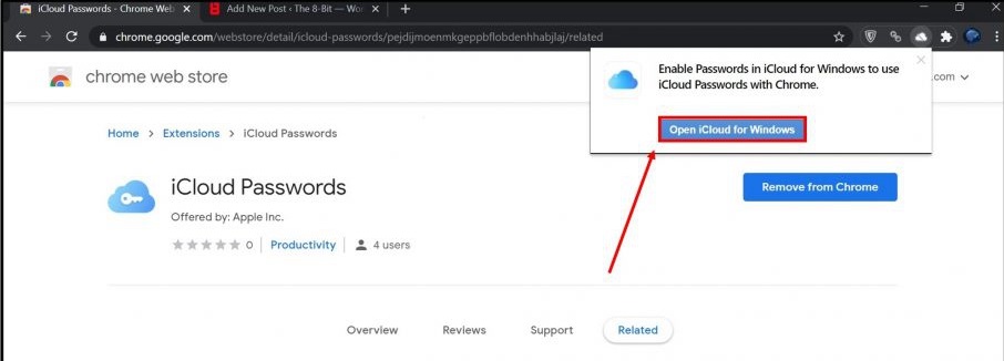 Mac完美下载提醒,iCloud Passwords Chrome 扩展仍可使用,但现在启动后会指向苹果的支持页面。