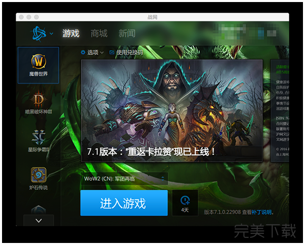 Update:小编提供的7.1的资源是国服战网客户端Mac版的安装包,用户可以下载安装战网客户端,然后下载或者更新最新版本的魔兽世界。
